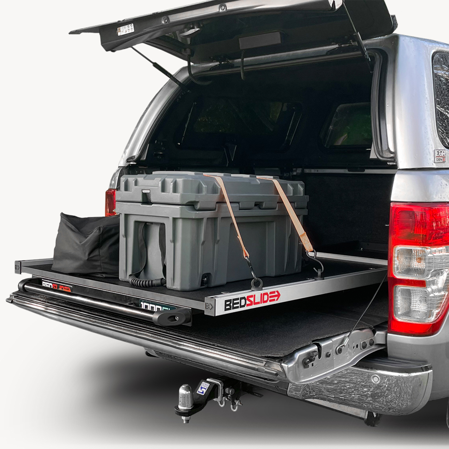 The BedSlide’s durable alloy frame ensures maximum strength and rigidity, withstanding up to 450 kg of cargo. Two cam follower bearings and two sealed-bearing rollers smoothly and effortlessly guide the deck in and out of the bed.