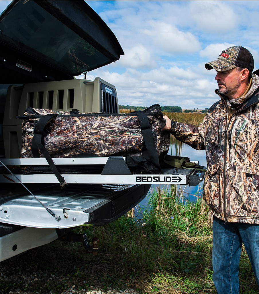 The BedSlide is built to last, featuring a lightweight composite deck for durable all-weather performance. The deck’s textured, non-slip surface keeps cargo stationary while driving, preventing damage from load shifting.
