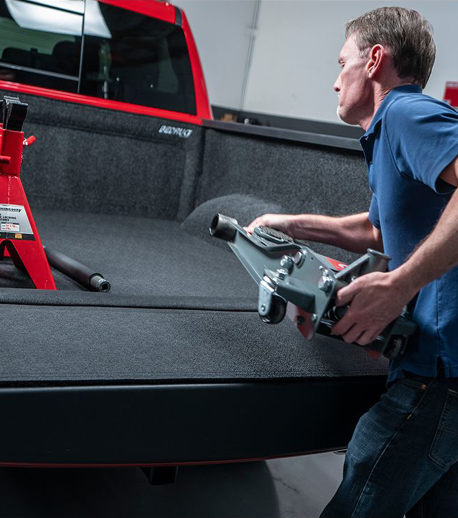 The BedRug Impact Liner features a simple drop-in installation using the included self-adhesive hook-and-loop strips. This liner comes in five pieces, which lock together using heavy-duty zippers. Simply zip each of the bedside and bulkhead covers to the floor and drop them into the tray.