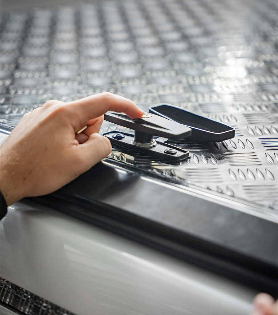 The Defender Hard Lid includes gas struts for lifting, side corner latches and a push-button centre key-lock handle to make sure everything is locked securely and safely. Once the Defender is closed and key locked, your load area is completely secure.