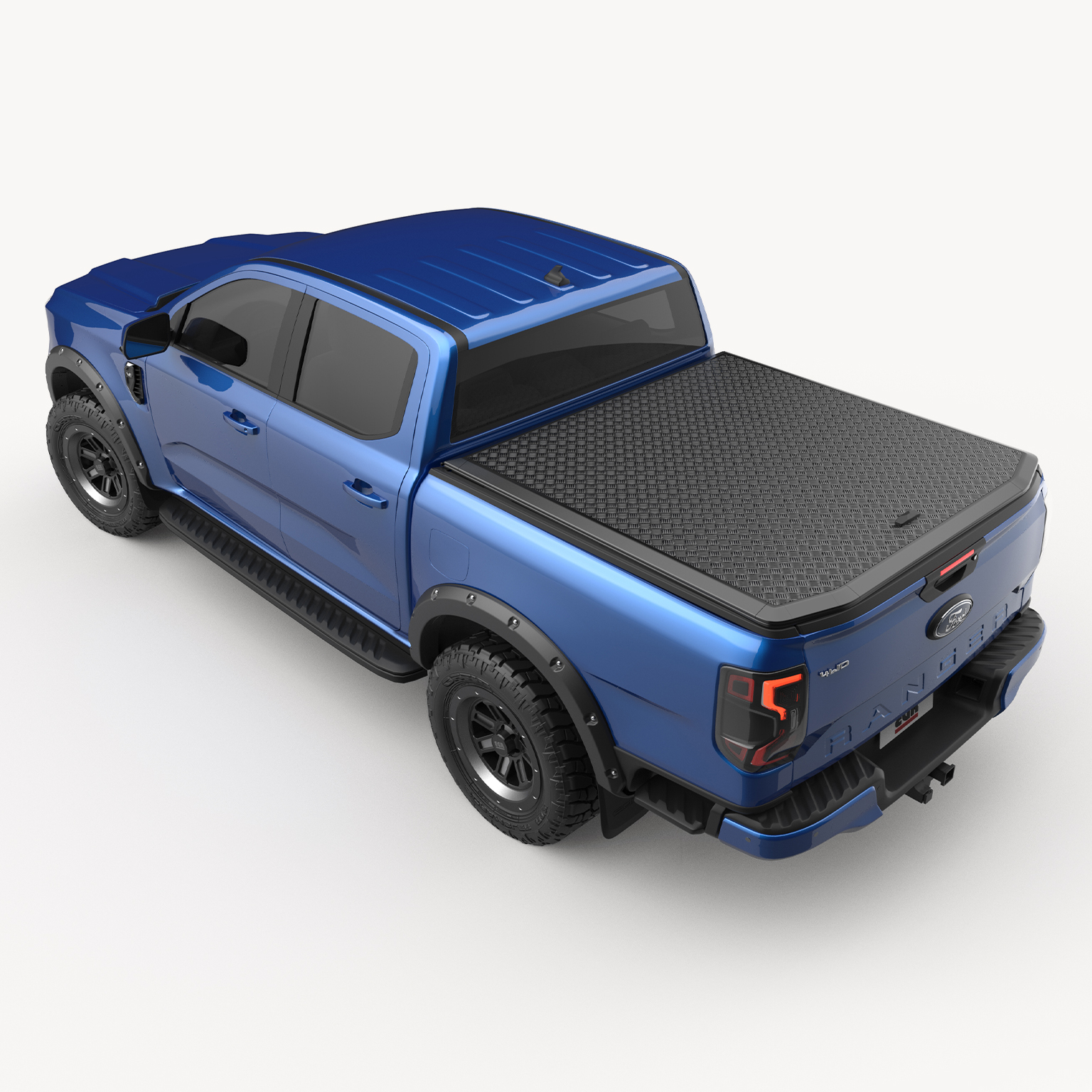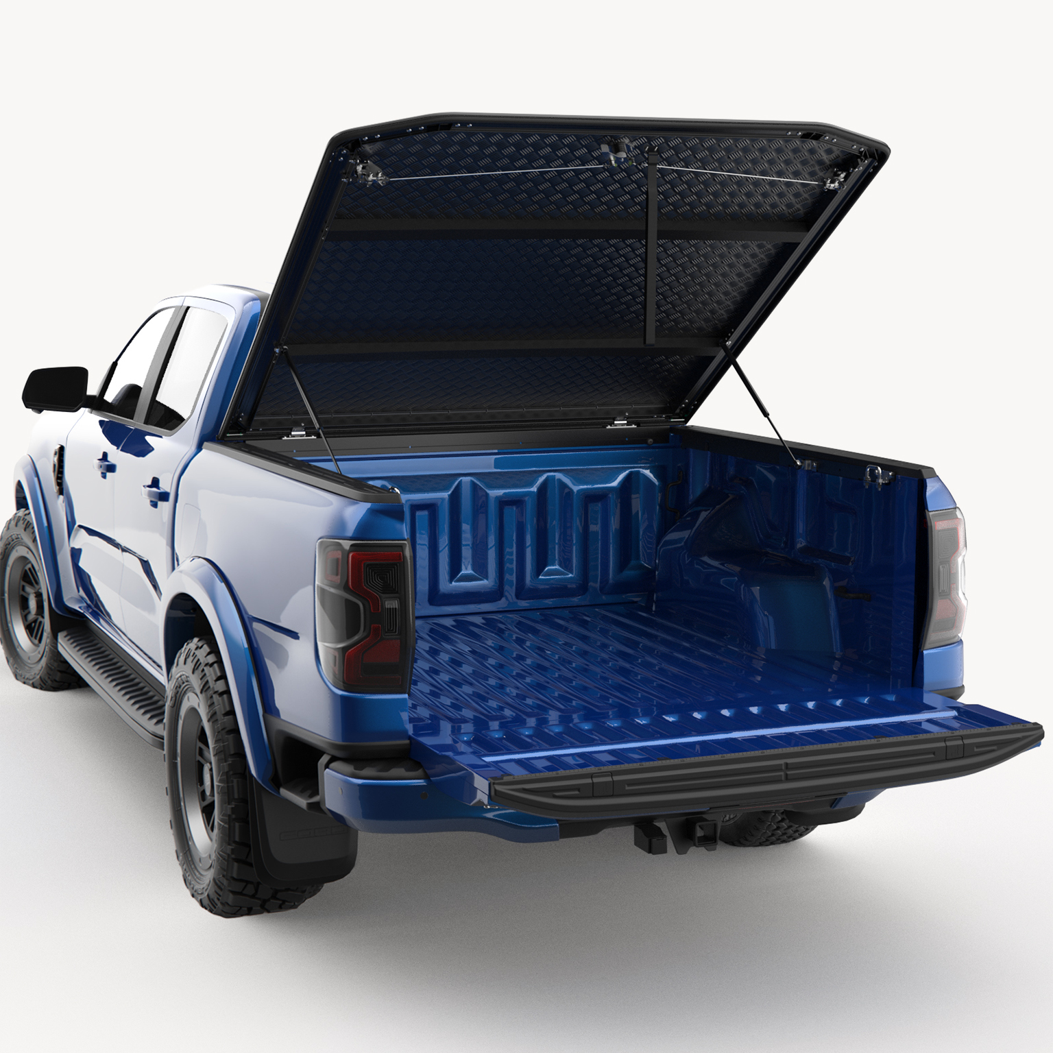 The Ford Ranger Defender Hard Lid allows you to use your ute tray as a secure storage space. No more filling your backseat with dirty tools, gear and supplies. A 2.5mm layer of five-bar checker plate aluminium with a black powder coat finish creates a strong, durable surface. While a large opening angle, ensures your gear remains accessible from any angle and a push-button centre key-lock handle efficiently locks both sides of the tray to make sure everything is secured.