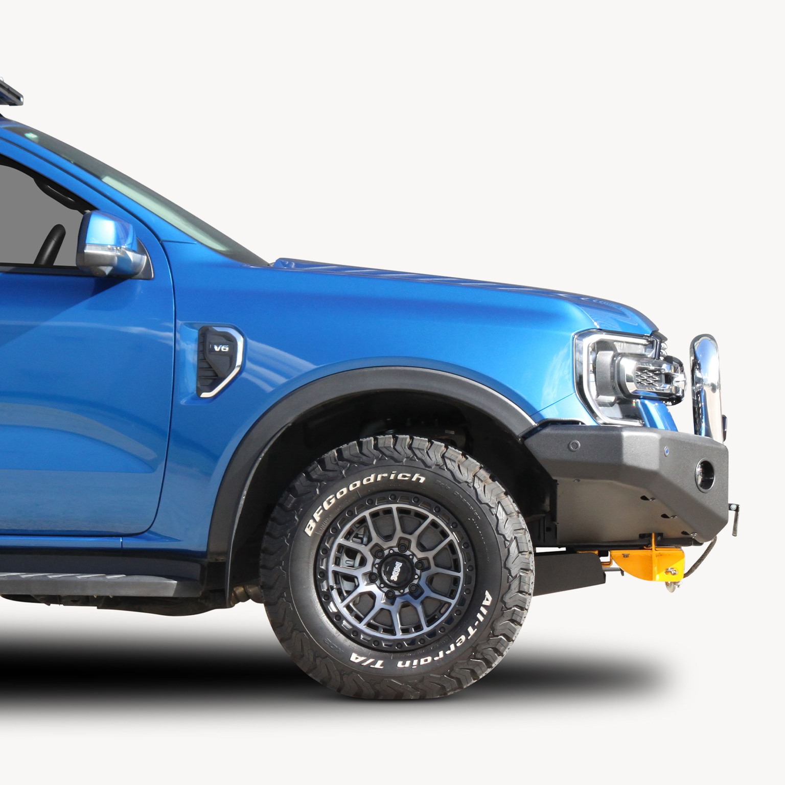 ECB’s Bullbar are made from a hi-tensile alloy that weighs half the weight of a steel Bullbar, yet offers the same level of protection. Designed to wrap around the front of the vehicle and mounted to the frame with a specific engineered 8mm thick plate steel mount to form an incredibly secure and strong fit.