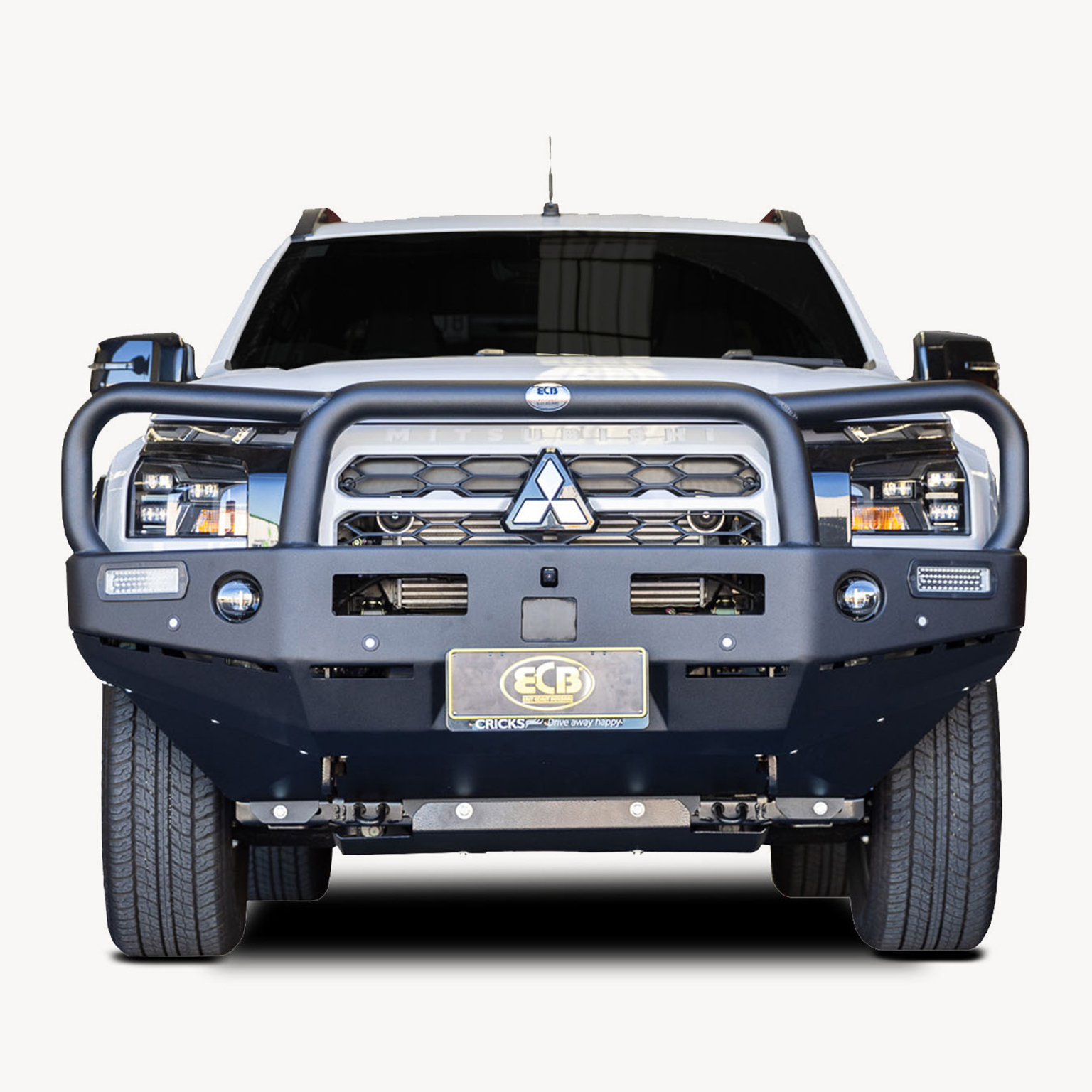 The Bullbar is further reinforced with a full width and braced lower protection skirt. Every Bullbar is secured to the vehicle with a specific engineered 8mm thick plate plasma cut steel mount and allows expansion of the crumple zones in the event of a crash. Everything ECB makes is Air Bag Compatible and ADR Compliant.