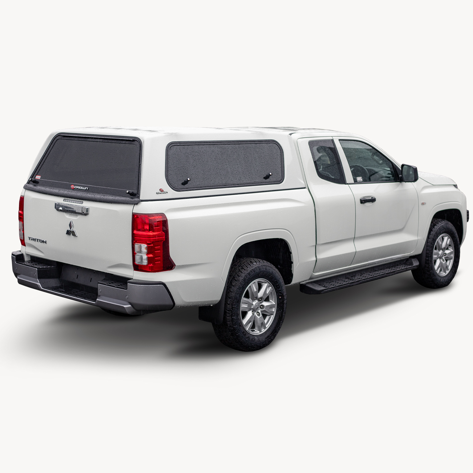 Engineered from a single fibreglass shell, the Mitsubishi Triton Extra Cab Crown Canopy is a strong, impact-resistant extension of the vehicle that gives you a frameless 100kg dynamic load rating straight out of the box, maximising your tray space. Painted with a smooth high-gloss finish, to OEM colour standards and customisable with window options for whatever job or weekend you’re on.