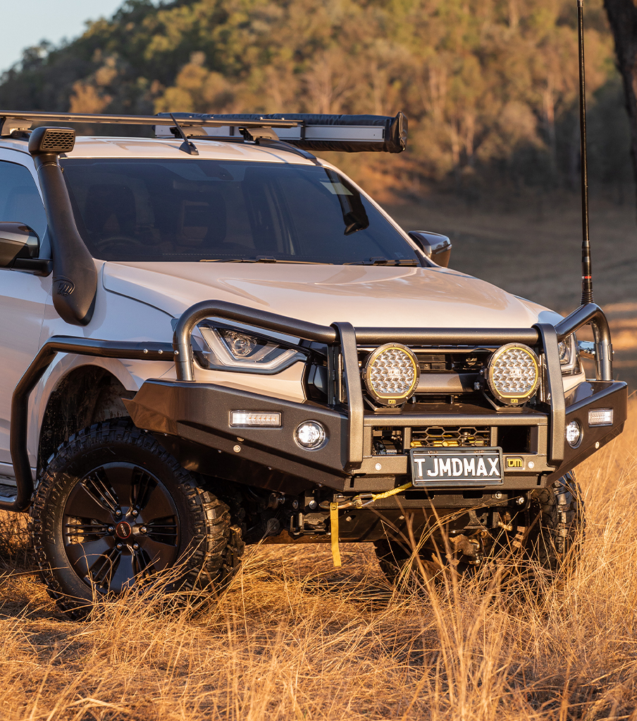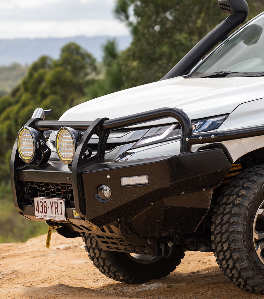 The TJM Outback Bull Bar is ready to provide a home for additional accessories with dual aerial mounts, winch frame and mounting points for installing driving lights.