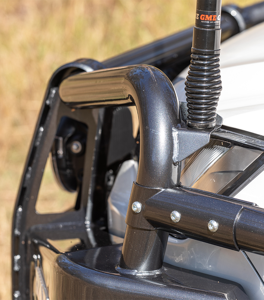 Full wrap rolled cato straps and 63mm outer pipework provides added strength, damage deflection and headlight protection, while its multi-fold channel has been strategically pressed and CNC folded to maximise impact strength.