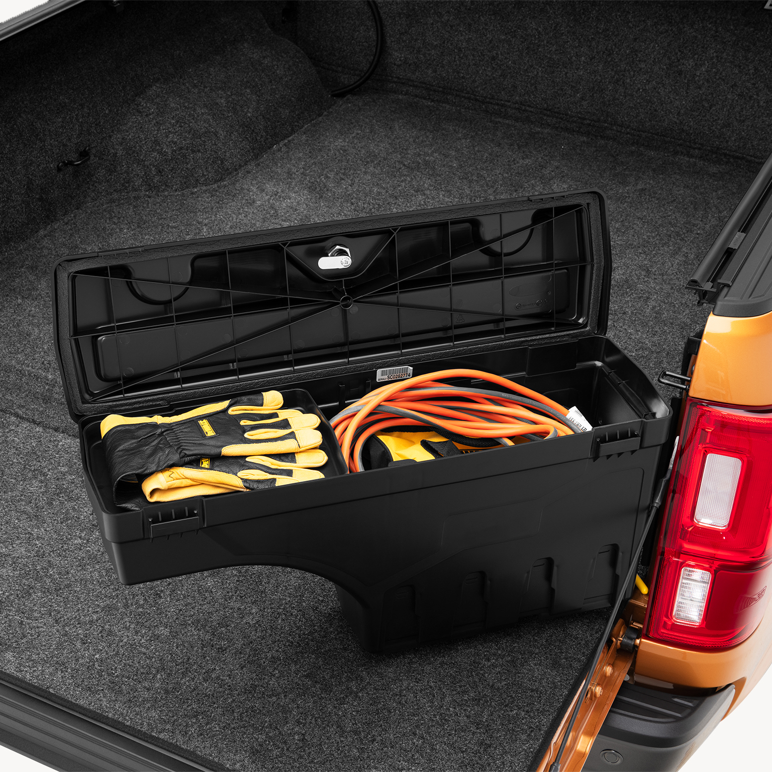 Crafted from durable composite materials, the Tub Locker Toolbox is built for strength and corrosion resistance. It mounts on heavy-duty steel hinges that let you swing the toolbox out over the tailgate, giving you quick and easy access to your gear.